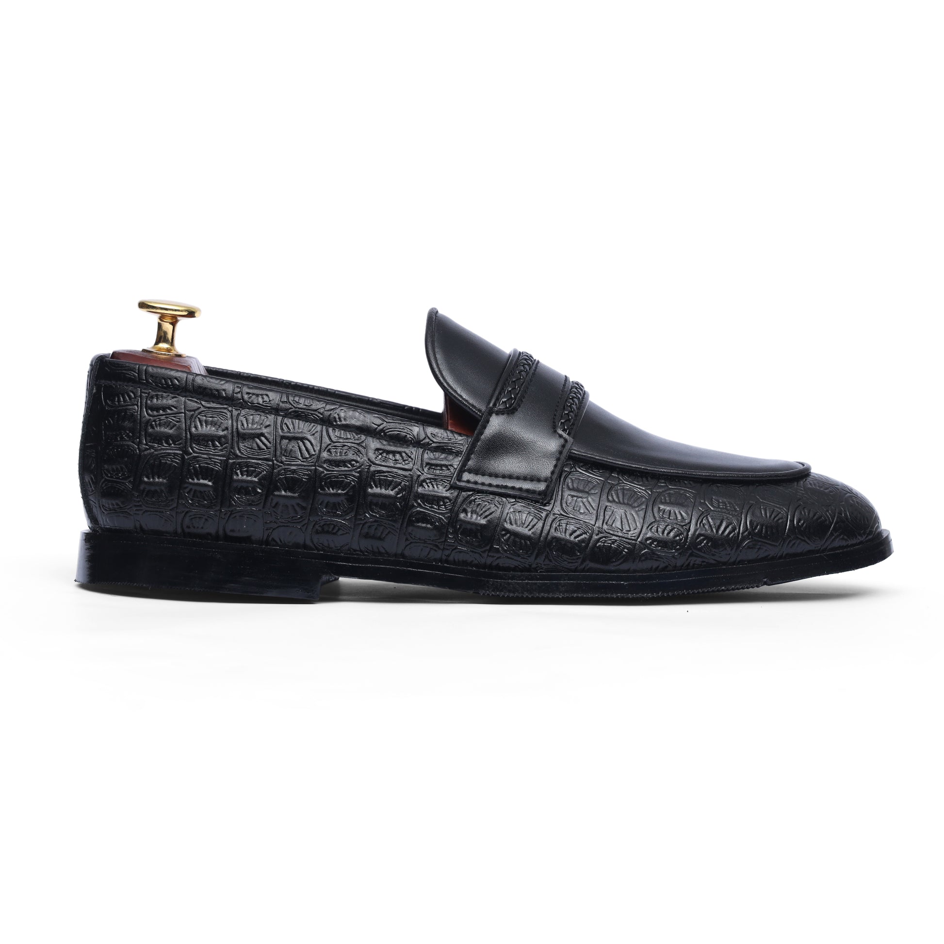 Black croc penny strap formal